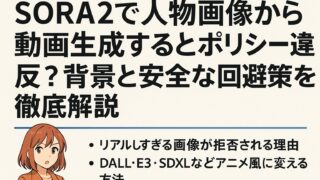 SORA2で人物画像を使うとポリシー違反になる理由を解説。リアルすぎる画像が拒否される仕組みと、DALL·E3・SDXLで安全にアニメ化する方法を紹介。