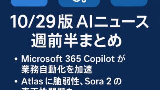 【AIニュース】Microsoft 365 Copilotが“作る×自動化×エージェント”を統合|OpenAI Atlas脆弱性・Sora2真正性問題・TPU100万枚計画も【2025年10月第5週前半】
