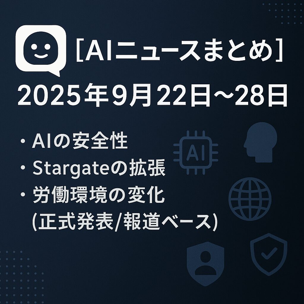 2025年9月22日〜28日のAIニュースは、安全性・制御リスク、インフラ拡張、デバイス進化、労働環境への影響といった多角的なテーマが目立ちました。