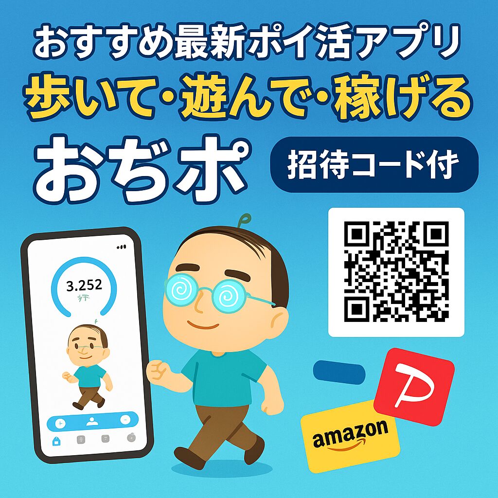 「おぢポ」は、歩数・ゲーム・広告視聴・友達招待など、日常の行動をポイントに変える無料ポイ活アプリです。
