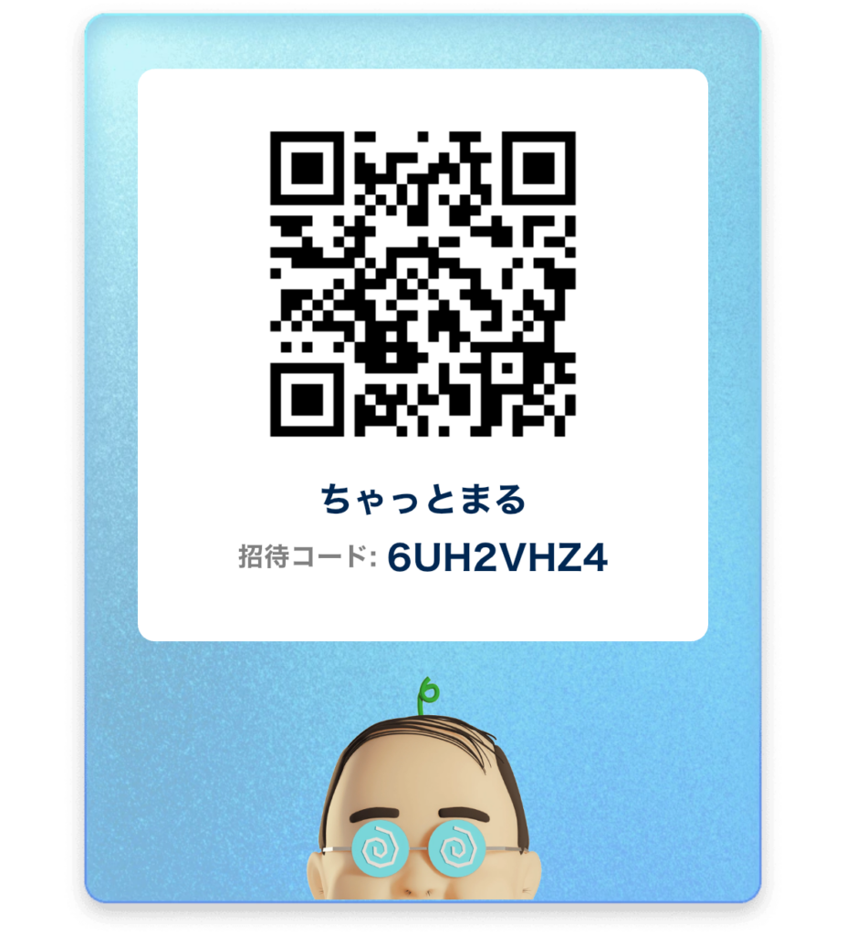 初回登録時に招待コード「6UH2VHZ4」を入力することで、スタートダッシュを切れます。