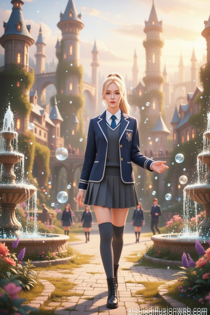 例:「少女が風に吹かれる草原を歩く」「夜の街に光るネオンサインを映す」など。